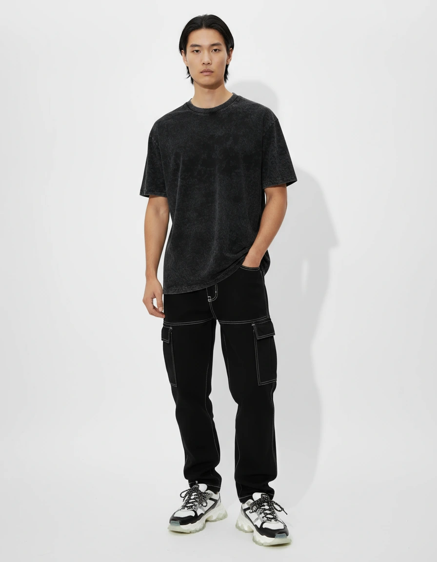 Step into edgy street style with our Black Acid Wash T-Shirt. This premium oversized tee features a distinctive acid wash finish that creates unique patterns on each piece, ensuring no two shirts are exactly alike. The relaxed, oversized fit offers maximum comfort while maintaining a contemporary silhouette. Perfect for those who want to make a bold statement, this versatile piece pairs effortlessly with jeans, joggers, or shorts. The soft, breathable fabric ensures all-day comfort, while the eye-catching acid wash treatment adds instant attitude to any outfit.