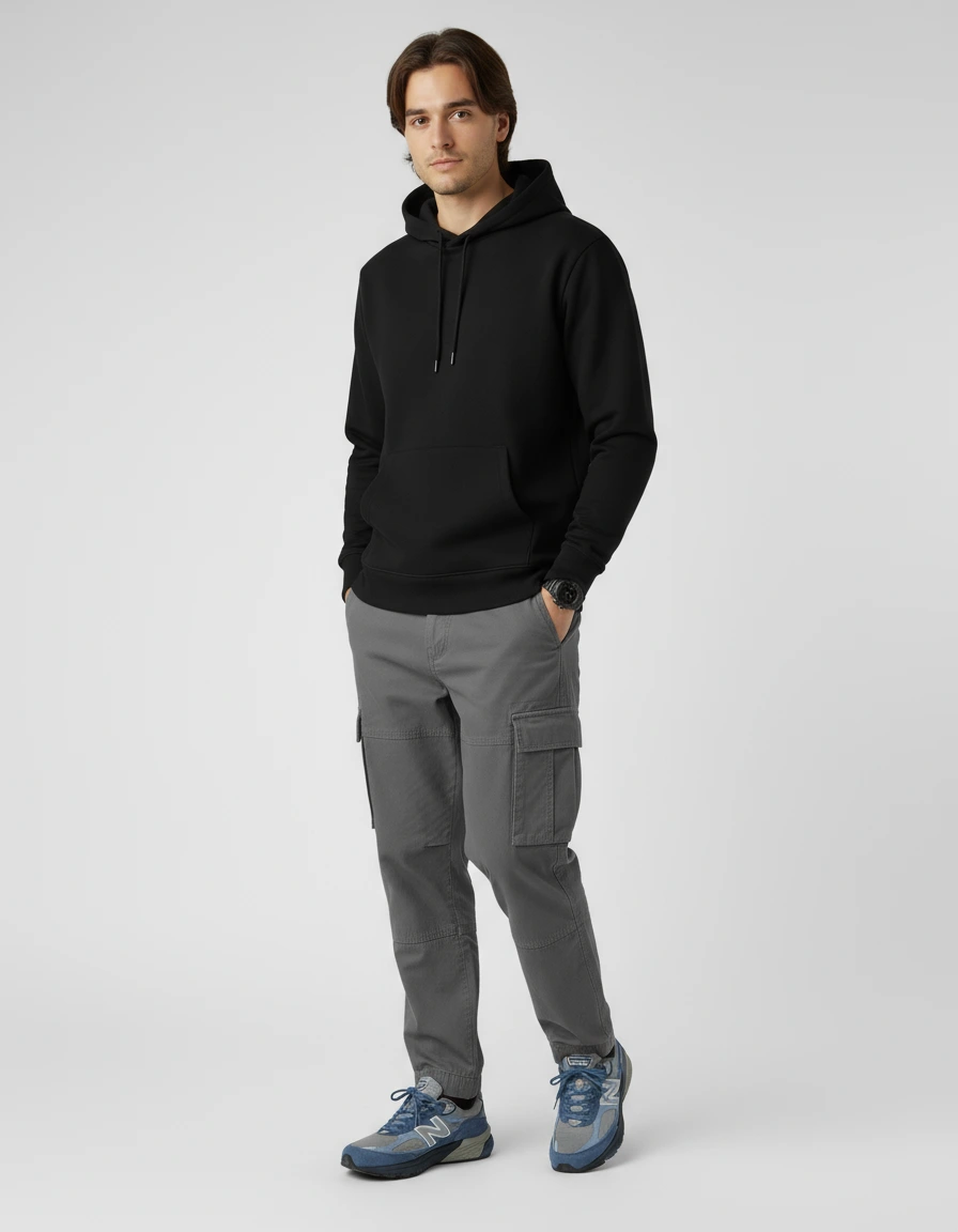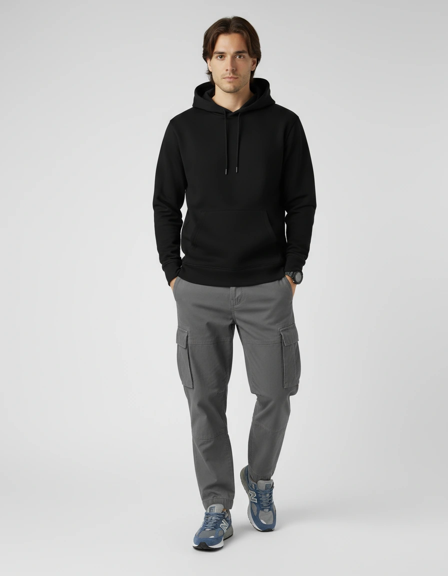 Stay warm and stylish with our Black Hoodie. This essential layering piece is crafted for comfort and durability, featuring a classic pullover design with an adjustable drawstring hood. The timeless black colorway ensures versatility, making it easy to pair with any outfit in your wardrobe. Constructed from a premium cotton blend, this hoodie offers the perfect weight for year-round wear warm enough for chilly evenings yet breathable enough for mild days. The kangaroo pocket provides practical storage and a place to keep your hands warm. A true wardrobe staple that never goes out of style.