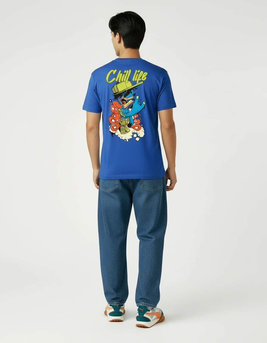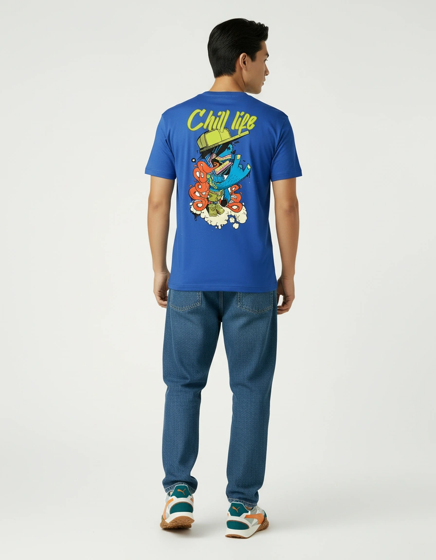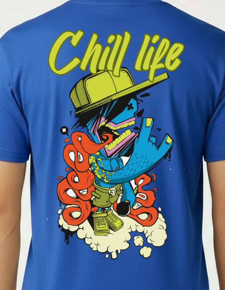 Live the laid-back lifestyle with the Chill Life Blue Classic Fit T-Shirt from Laugh n Slay. Features vibrant cartoon characters in relaxed poses with bold "Chill Life" typography on back. Classic fit in royal blue with premium cotton construction. Perfect for those who prioritize peace of mind, good vibes, and taking life at their own pace. For the easygoing souls who know happiness beats hustle.