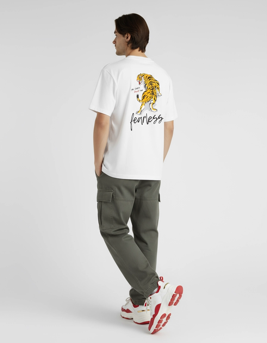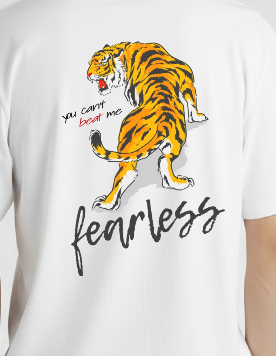 Channel courage with the Fearless White Premium Oversized T-Shirt. Features bold yellow tiger illustration with "fearless" script typography in confident style. Premium cotton with oversized fit delivers superior comfort. For brave individuals who face challenges head-on and refuse to let fear dictate their choices or limit their potential.