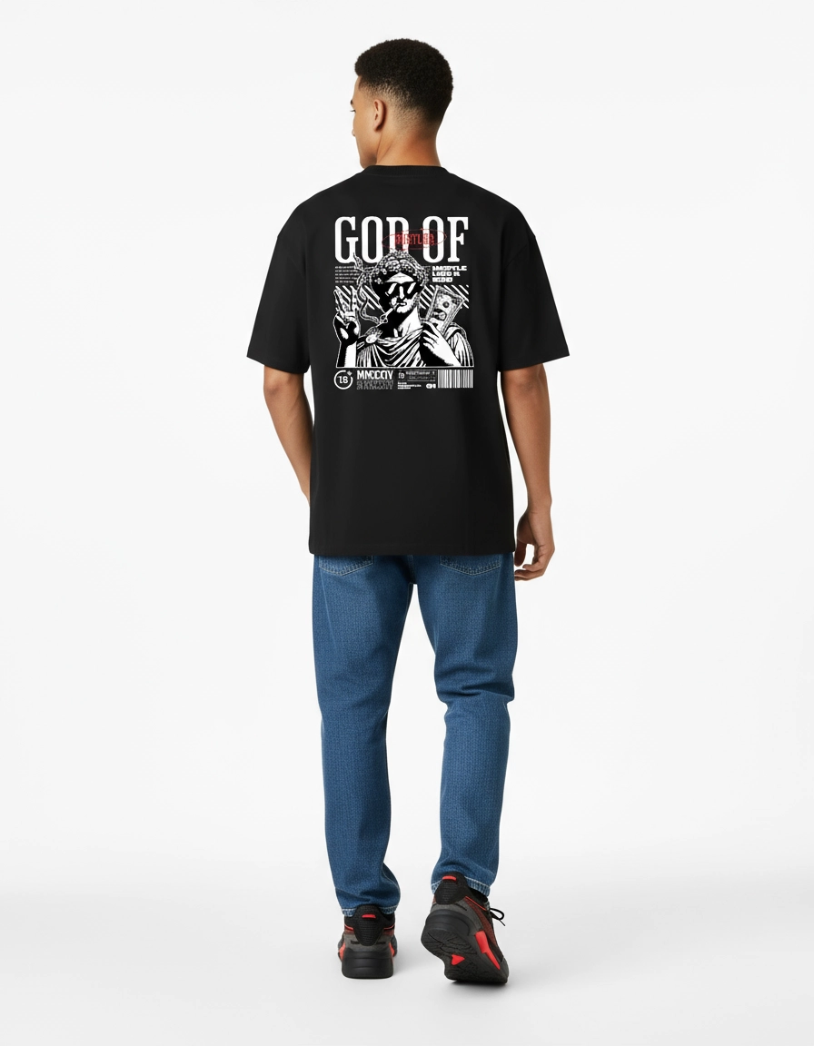 God Of Hustler Black Premium Oversized T-Shirt